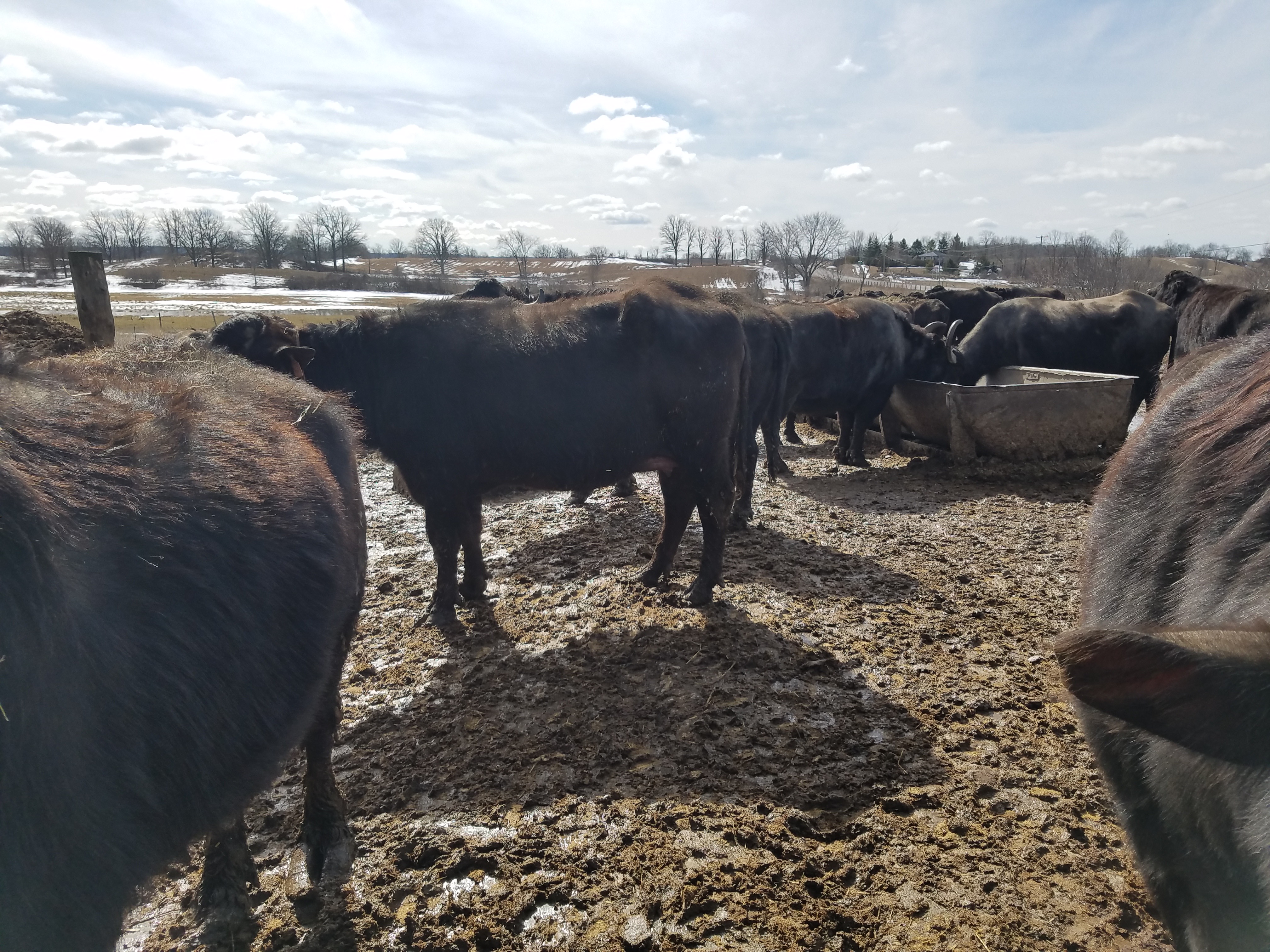 Buffaloes were confined in muddy, wet conditions, in which, according to the company’s owner, some lose their fur after suffering from frostbite during the frigid Canadian winters.
